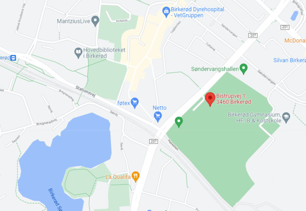 Vi træner i Birkerød Idrætscenter, Bistrupvej 1.